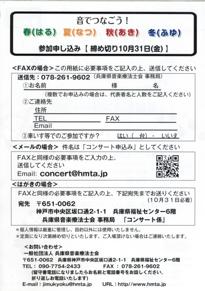 11/9 兵庫県音楽療法士による参加型コンサート2025[「音でつなごう!春夏秋冬」